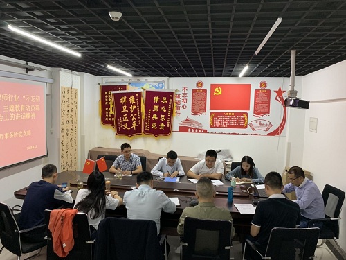 接着陈旭副书记就9月20日成都市律协《开展“不忘初心、牢记使命”主题教育实施方案》的通知做了进一步宣讲,明确了主题教育目标要求:认真学习贯彻习近平新时代中国特色社会主义思想,自觉增强“四个意识”、坚定“四个自信”、做到“两个维护”,坚持把“不忘初心,牢记使命”,作为永恒课题、终身任务。他强调本次主题开展时间从2019年9月到11月底,在主题活动中,各党员律师要充分运用“学习强国”、“党员e家”、微信公众号、微视频等学习平台,通过参加各种比赛、座谈会、培训班、到红色基地参观等形式开展学习。准确把握“守初心、担使命,找差距、抓落实”的总要求,真正做到理论学习有收获、思想政治受洗礼。